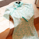 依依家的 水钻扣烂花真丝旗袍短款高档桑蚕丝连衣裙龙笛吉祥斋