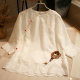 依依家的聆刺绣花朵纯白雪纺中式改良汉服旗袍上衣禅服茶人服上衣