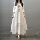 原创设计2017年春季假两件长裙文艺大摆亚麻连衣裙宽松长袖棉麻裙