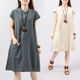 2017春夏季新款大码女装棉麻复古褶皱中长款宽松短袖亚麻连衣裙潮