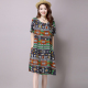 2016夏装新款韩版大码女装宽松中长款复古印花五分袖棉麻连衣裙女