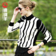 迪瑞羊羊绒衫女条纹春季短款纯羊绒半高领外穿毛衣欧美时尚针织衫