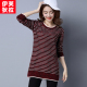 毛衣女秋冬中长款宽松条纹针织衫加厚打底衫韩版显瘦套头毛线衣女