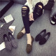 2017春季新款韩版平底套脚尖头单鞋女中空浅口休闲镂空平跟女鞋潮