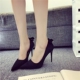 2017春秋季性感女高跟鞋细跟尖头绒面单鞋黑色职业鞋甜美淑女鞋子