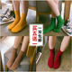 堆堆袜女糖果色学生袜月子袜孕妇袜棉袜袜子韩版松口卷边中筒袜