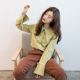 M家自制西装V领慵懒设计感撞色宽松长袖衬衣韩国东大门女2017春