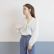 M家自制V领法式睡衣设计感线条衬衣韩国东大门女2017春