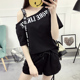 袖子破洞T恤衫女短袖2017春夏装新款女装韩版宽松字母印花体恤衫