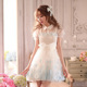 蕾丝连衣裙女夏季2017新款糖果雨日系甜美一字领吊带修身短袖中裙