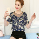2017夏天新款碎花网纱雪纺衫女短袖t恤喇叭袖气质修身显瘦小衫潮