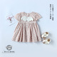 ins新品女童夏季甜美小飞袖连衣裙 婴儿粉红格子露背百褶裙