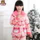 儿童珊瑚绒睡衣夹棉长袖加厚男孩秋冬季大童女童法兰绒家居服套装