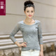 打底衫女民族风长袖T恤女2017春装时尚新款大码胖mm蕾丝袖上衣