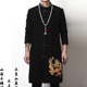 男士风衣男中长款复古中国风男装个性潮刺绣亚麻龙袍外套男款大衣