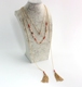 欧美风饰品 长款多层绿松石、粉晶石镶嵌项链 白松三角四层项链