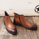 切尔西男靴冬季擦色布洛克雕花真皮短筒马丁靴男英伦男士尖头皮靴