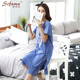斯服玛睡衣女夏天睡裙短袖韩版翻领开扣纯棉休闲中裙家居服女夏季