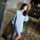 春秋季睡裙女长袖新款宽松大码胖mm加肥加大条纹棉睡衣家居服长裙