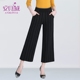 安贝威阔腿裤女2017春秋新款九分裤黑色高腰长裤大码显瘦休闲裤女