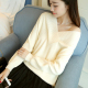 2016新款秋装潮女装短款套头针织衫女韩版V领宽松白色夏薄打底衫
