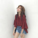 夏季韩版chic宽松显瘦露肩格子衬衣女气质长袖吊带一字领衬衫上衣