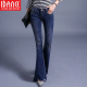 iDance春季女式微喇牛仔裤不规则弹力微喇叭牛仔长裤修身喇叭裤子