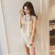 夏季新款韩版无袖镂空钩花拼接蕾丝上衣套装女纯色休闲短裤两件套