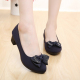 老北京布鞋女坡跟单鞋布鞋女中跟蝴蝶结浅口黑色工作鞋女黑色布鞋