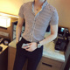 2017新款夏季衬衫男短袖修身型竖条纹衬衫男韩版拼色百搭男士寸衫