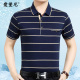 夏秋季男装薄款中年男士长袖t恤 大码翻领条纹爸爸装中老年人衣服