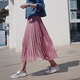 鬼鬼家 韩国代购 闪闪粉色 春天少女心 百褶洋气半身裙 长裙