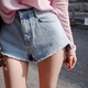 鬼鬼家 韩国代购 gossip 复古泛白显瘦裤脚剪边百搭牛仔短裤