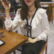 鬼鬼家韩国代购 刮起甜美风 系带蝴蝶结荷叶领减龄衬衫上衣