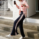 鬼鬼家 韩国代购 舒适面料 显瘦百褶皱运动风条纹休闲裤百搭