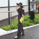 GZNP 韩国代购 露背绑带印花修身剪裁小礼服连衣裙