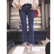 鬼鬼家韩国代购 Look 裤型显瘦 时尚裤脚流苏边百搭做旧牛仔裤