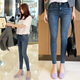 部分现货 韩国代购 显瘦基本款 必备裤脚剪边修身小脚牛仔裤