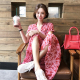 鬼鬼家韩国代购 gossip 浪漫碎花 褶皱材质V领洋气系带连衣裙