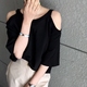 鬼鬼家 韩国代购 Attitude 性感露肩百搭显瘦侧开叉纯色T恤