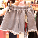 韩国代购2017夏季新品女装木耳边松紧腰系带阔腿休闲短裤M6205