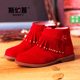 斯纳菲 女童靴子儿童单靴2017春秋季新款短低筒短靴裸靴真皮流苏