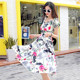 2017夏新款大码显瘦短袖度假沙滩裙中长款波西米亚碎花绵绸连衣裙