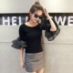 欧根纱荷叶边袖针织衫韩版217春装新款时尚一字领露肩毛衣女 上衣