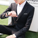 三件套春秋季韩版修身男士西服黑色休闲西装套装马甲新郎结婚礼服