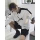 韩国ulzzang黑白撞色休闲长袖衬衫男士欧美时尚春装明星同款衬衣