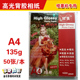 高光背胶相片纸135克50张A4喷墨打印机照片纸不干胶粘贴相纸