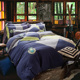 简约美式家纺1.5m床上用品全棉印花四件套纯棉贡缎被套床单式1.8m