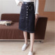 2017春季新款韩版复古高腰牛仔半身裙女排扣显瘦中长款包臀A字裙