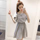 2017夏季新款学生露肩吊带上衣短袖t恤+阔腿短裤运动休闲两件套装